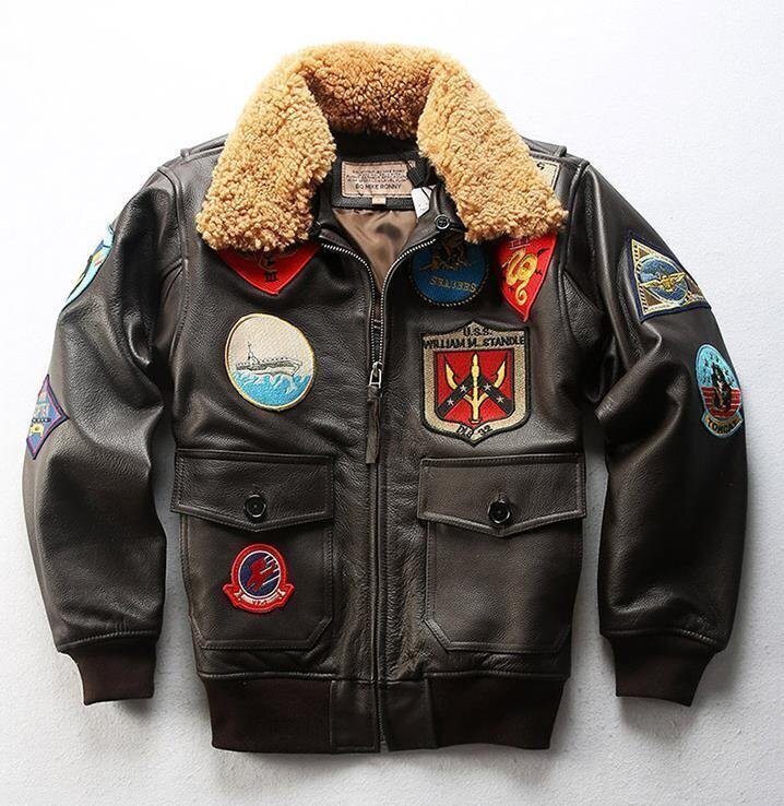 - 新商品!フライトジャケット メンズ ジャケット カジュアル 牛革 ウール 取り外し可能な襟 牛革刺繍 レザージャケット Lサイズ S~3XL
