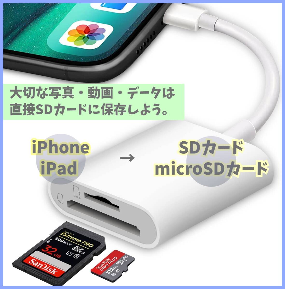 - iPhone SDカードリーダー TF/microSDカード 2in1 双方向データ転送 USB3.0 iPad Apple iOS最新対応 ライトニングケーブル Lightning f1cR