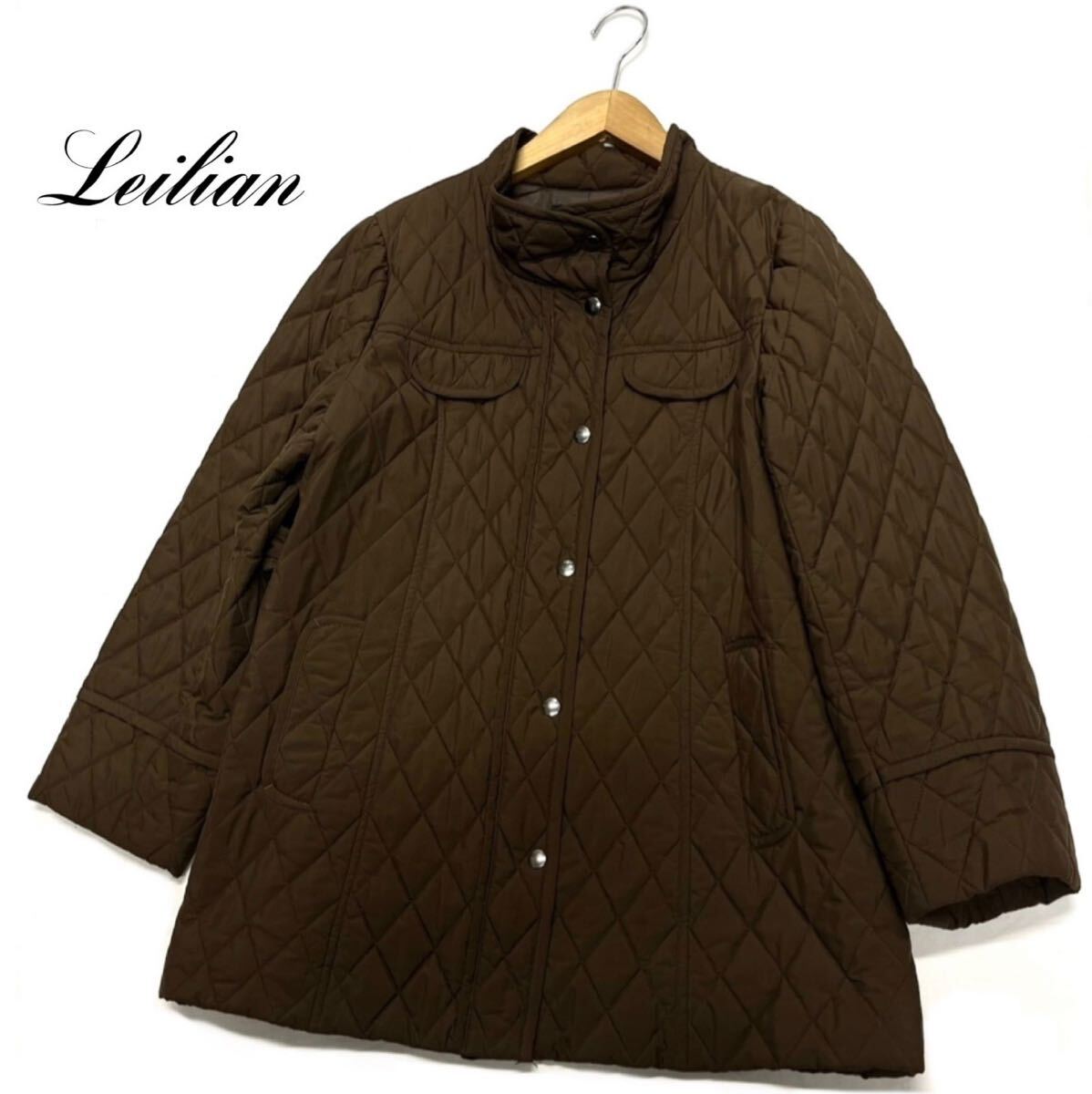 > Leilian★レリアン★大きいサイズ(13+)中綿 キルティング コート ジャケット/茶系 美品