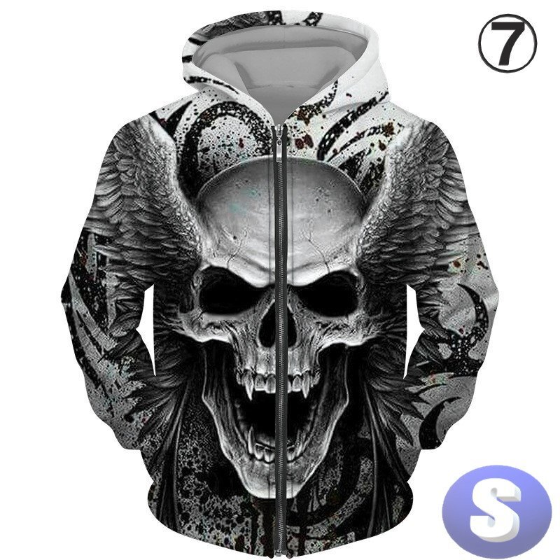 - フード付き ドクロパーカー ジップアップ カラー7 S トレーナー アウター 防寒 n712