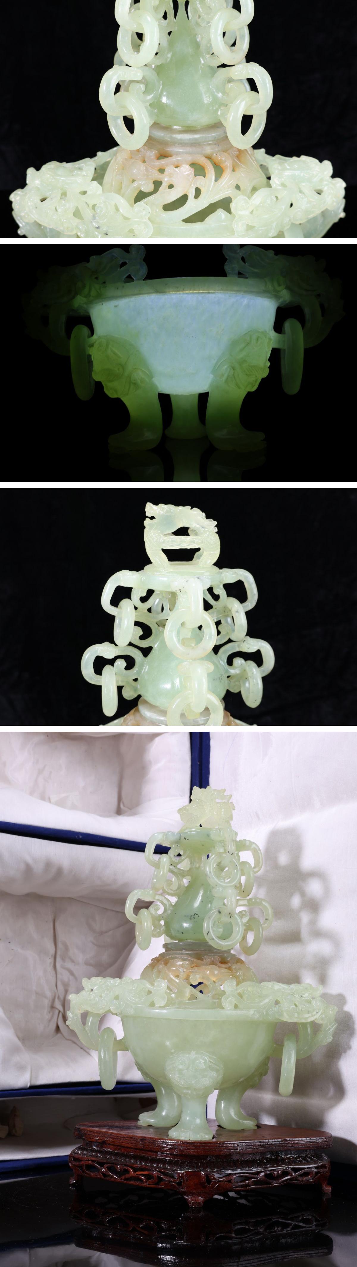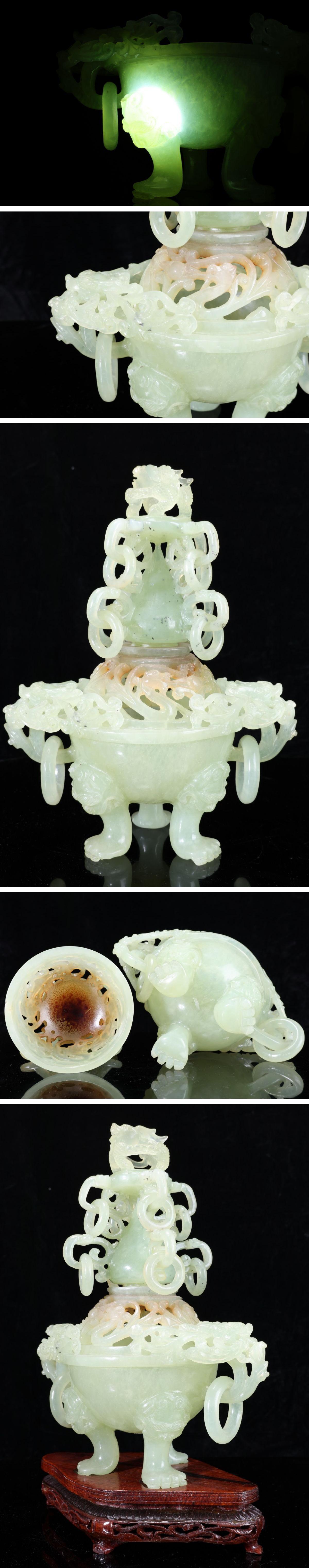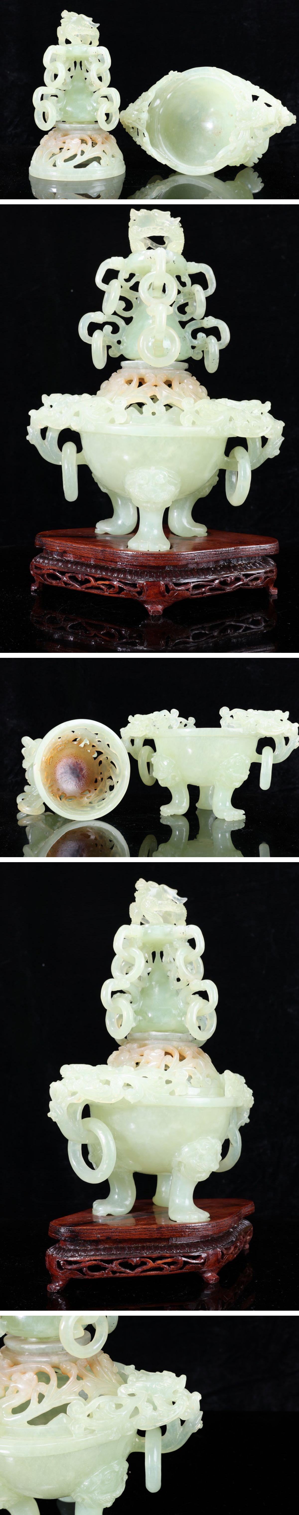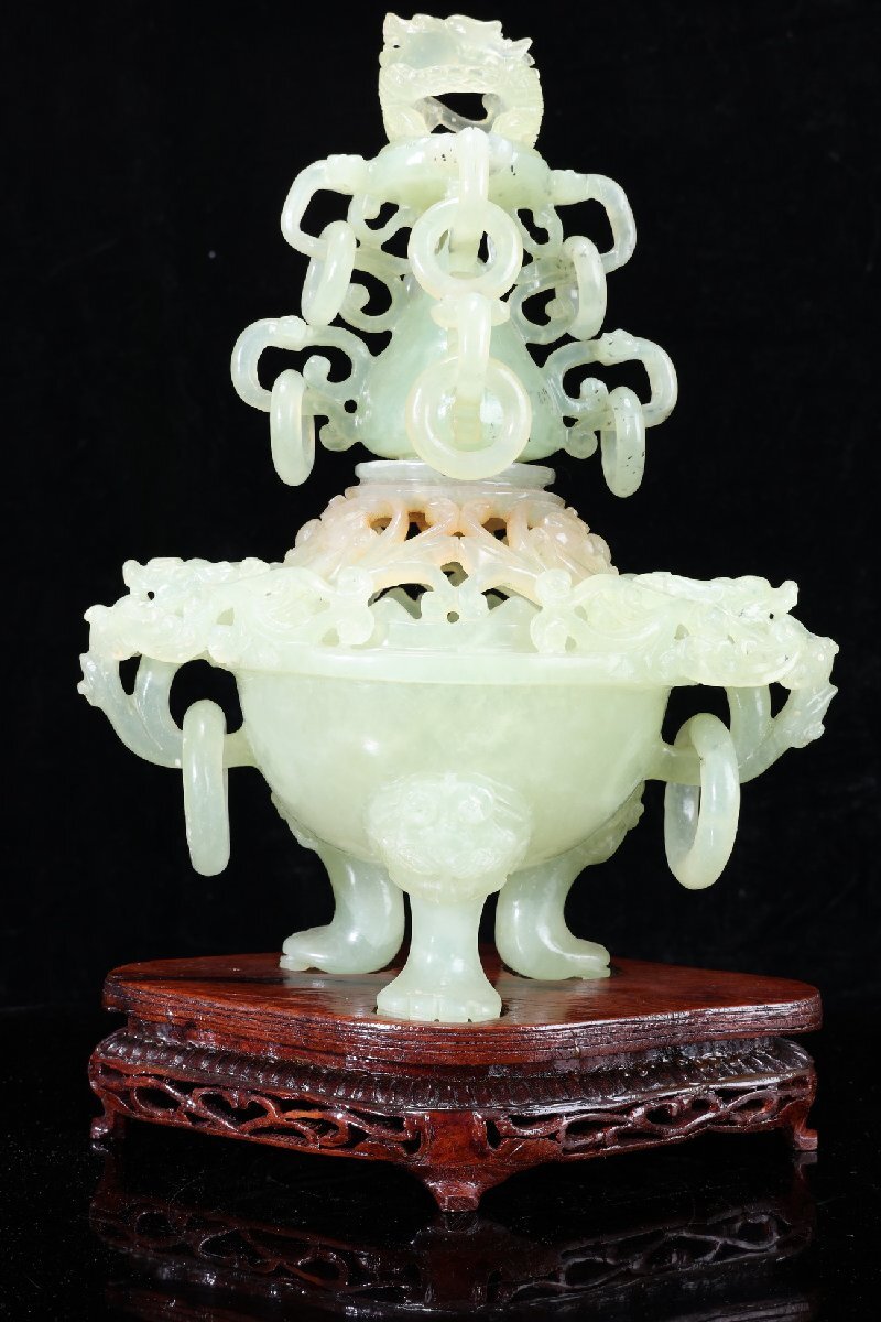 - 【珍品堂】1円から N93-V5 瑪瑙 天然石 三足 香炉 獅蓋 遊環 細密彫刻 透かし 重1401g 台付 香道具 鑑賞品 コレクション 時代物 骨董品