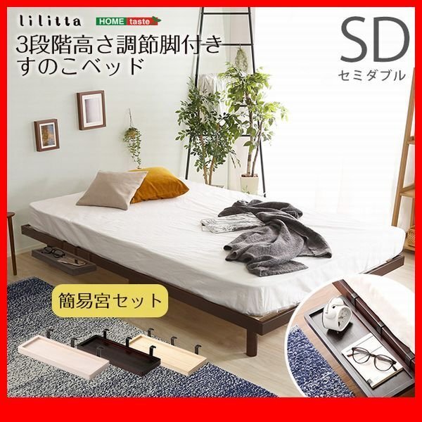 - すのこベッド★簡易宮セット/3段階高さ調節 脚付きすのこベッド/セミダブル/北欧産パイン材 低ホルムアルデヒド 頑丈/茶 白 ナチュラル/zz