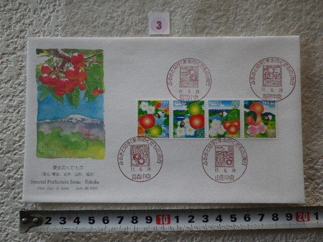 - FDC ふるさと切手 東北のくだもの 4貼4消 多局印 解説書有●3●同梱大歓迎