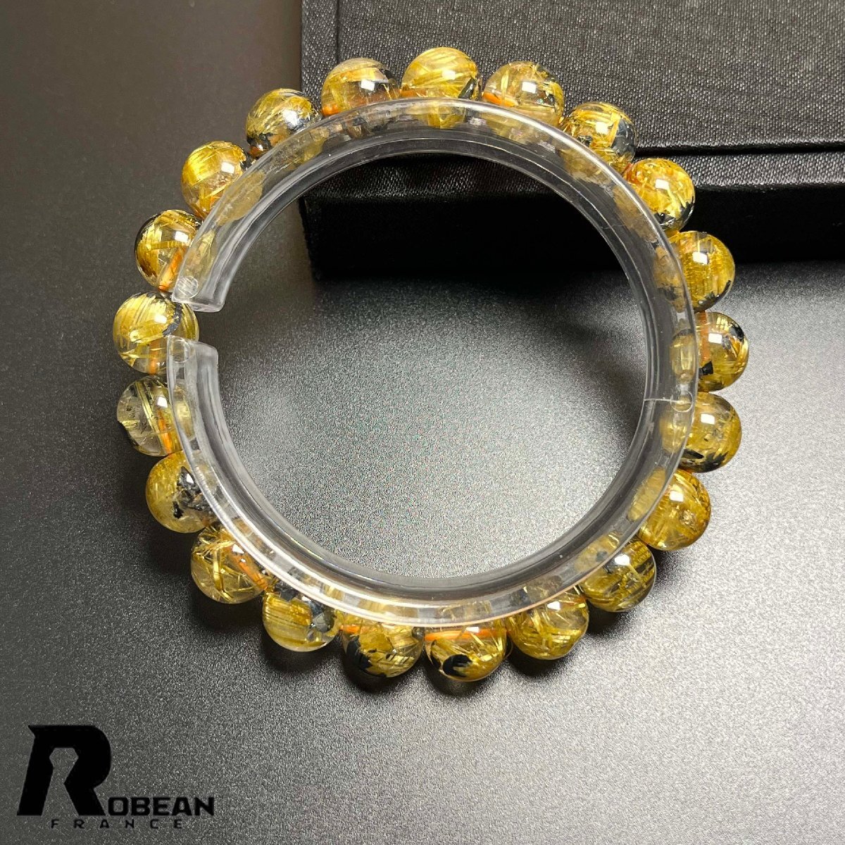 > 絶賛 EU製 定価24万円★ROBEAN・太陽花タイチンルチル★黄金針水晶 金運 開運 ゴールド ブレスレット パワーストーン 9.5-10.1mm K1015140