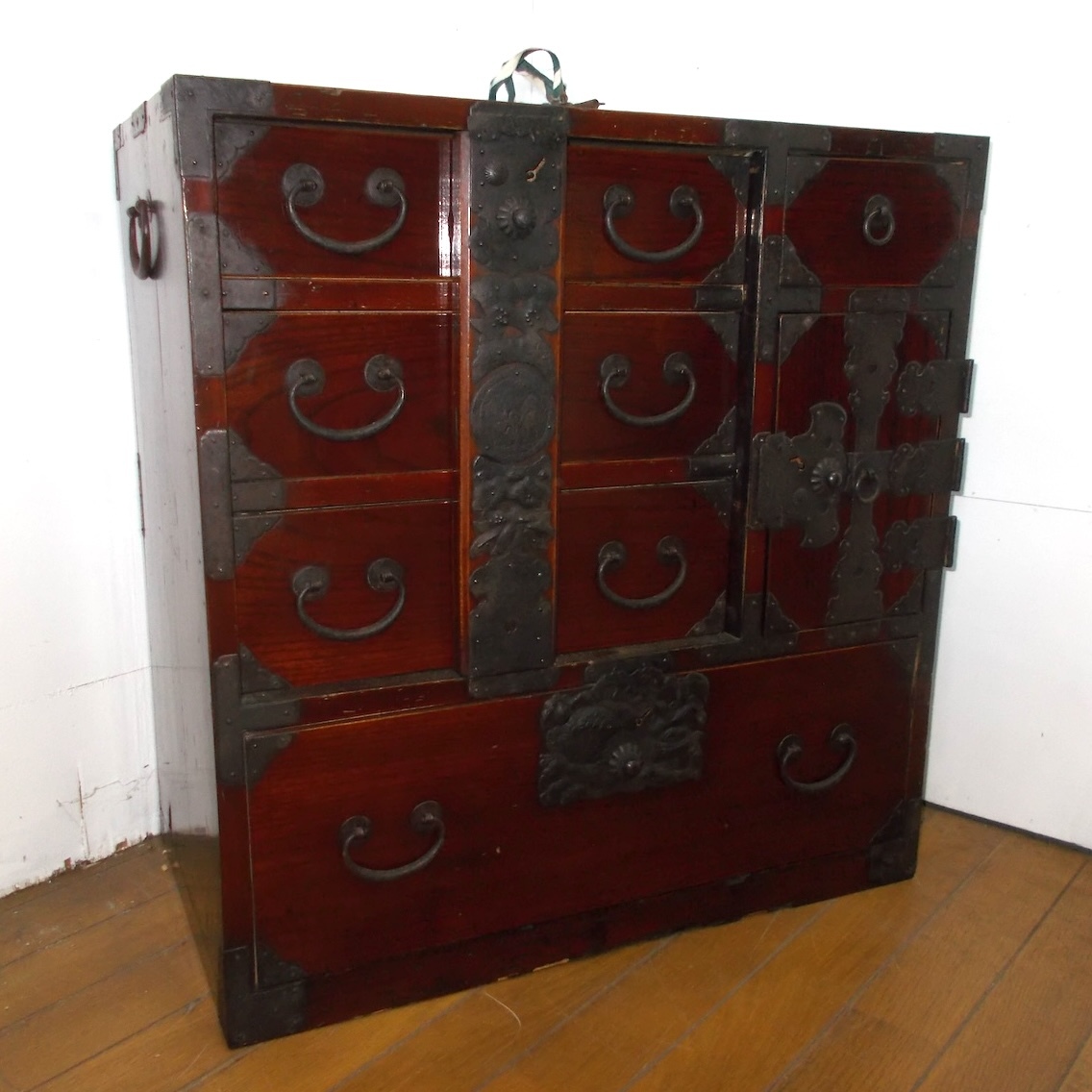 - ◆古い時代の庄内手許箪笥◆木地蝋塗◆時代鉄金具◆和装小物収納◆アンティーク
