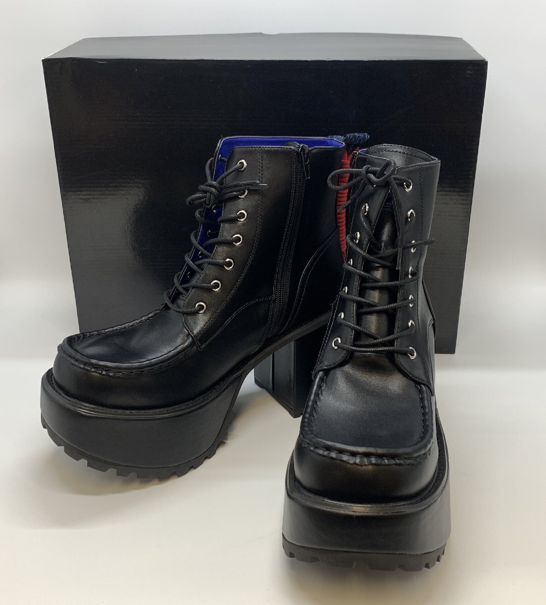 > 美品 YOSUKE ヨースケ 厚底編み上げブーツ 型番:2608018 サイズ:27cm ブラック メンズブーツ ☆良品☆[76-1013-8E6]