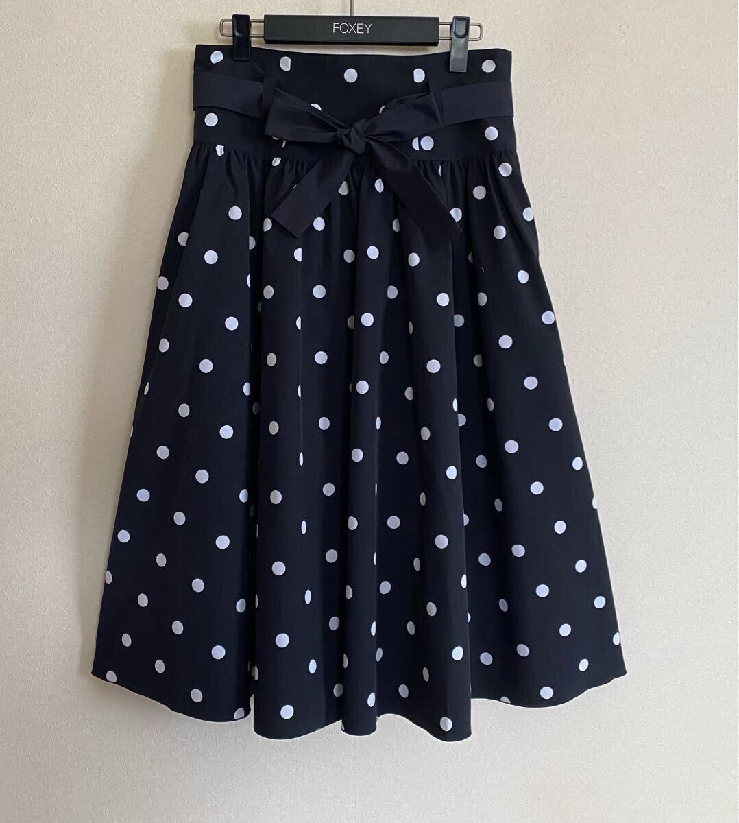 - エムズグレイシー◇美品綺麗♪2023ウェブ掲載♪ドットが可愛い!ウエストリボン 綺麗めフレアスカート 40◆ブラック