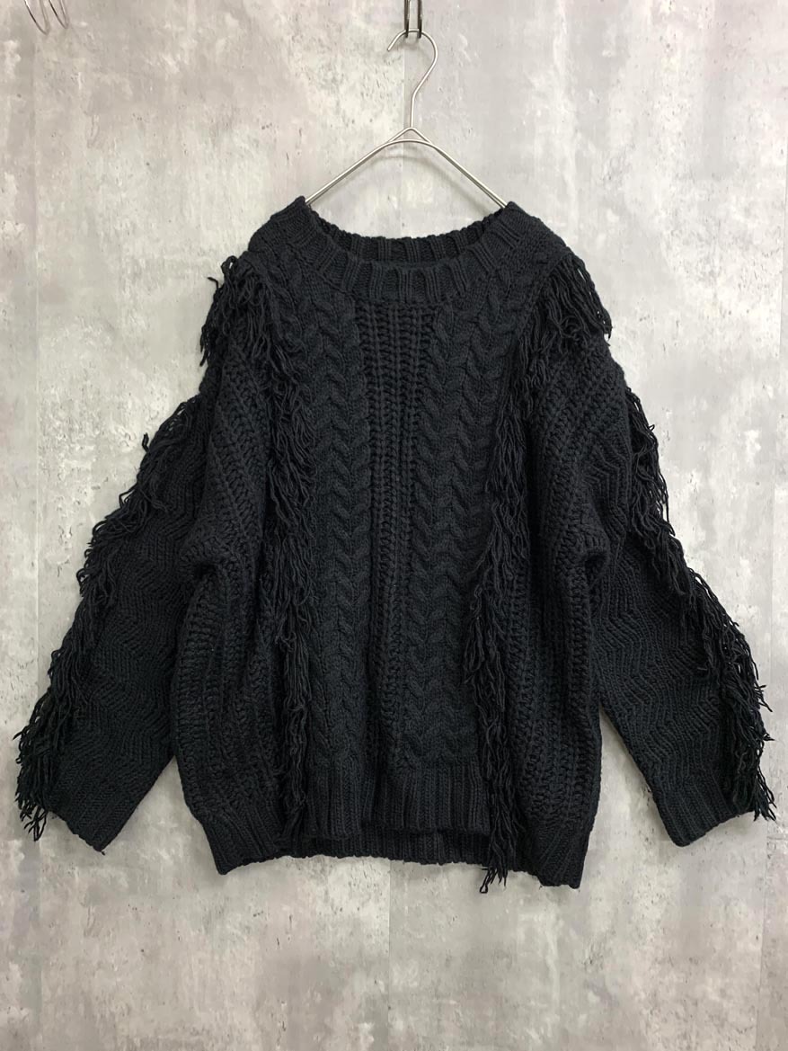 > EMODA エモダ 042112630801-01 MIX FRINDE KNIT ニット セーター sizeF/黒 ◆■ ☆ fkc1 レディース