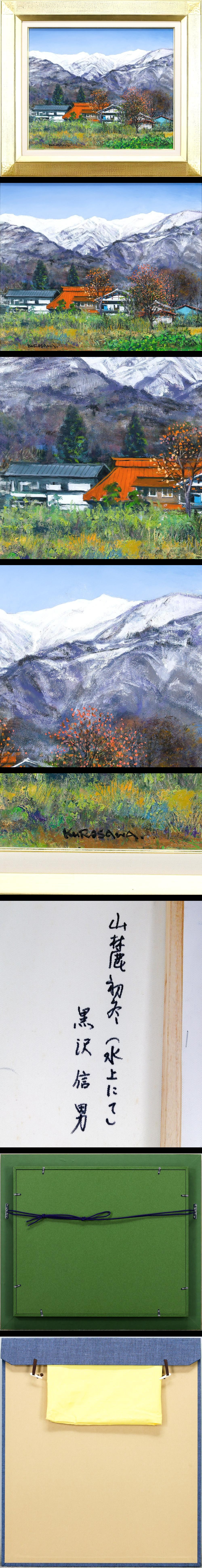 > 【真作】【WISH】黒澤信男「山麓初冬(水上にて)」油彩 8号 ◆雪山を望む山麓の初冬風景 〇日本の四季人気画家 白日会委員 #25112241