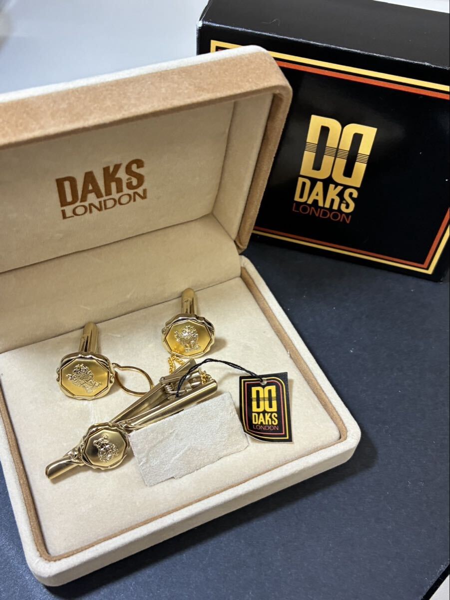 > Hア【11E48】 DAKS LONDON カフス&タイピンセット ケース付 箱付 美品 未使用品 ネクタイピン セット カフス ダックス