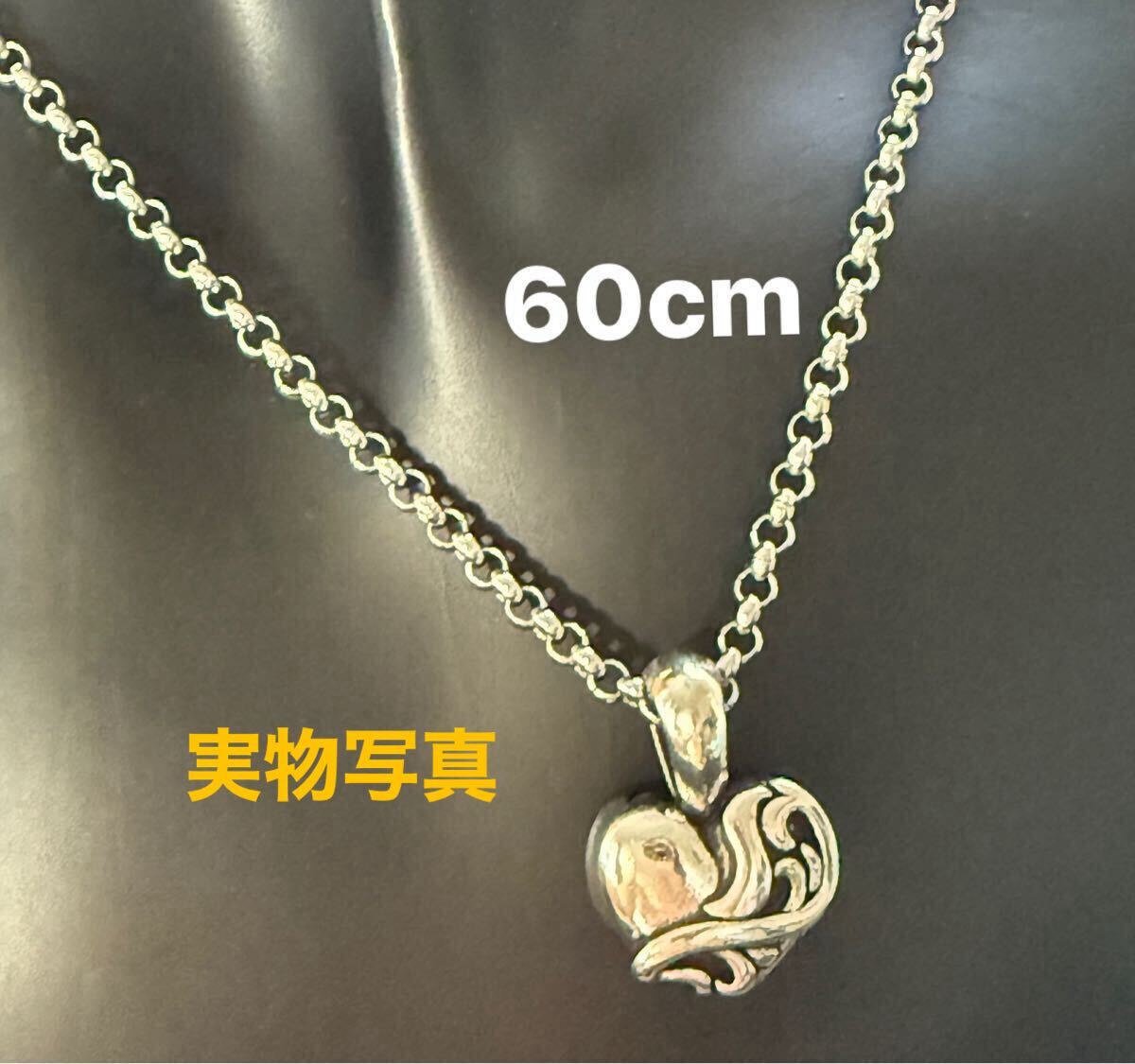 - ロールチェーン ネックレス シルバー アクセサリー クロス ハートチャーム 60cm 刻印あり 新品 男女兼用 送料無料