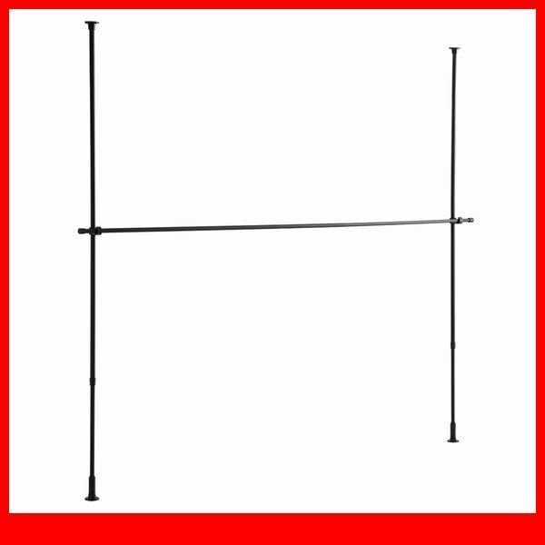 > ハンガーラック★新品/シンプル つっぱりハンガーラック 1段 幅170~250cm 高さ調整可能/ビス止め不要 賃貸OK/ブラック/a1