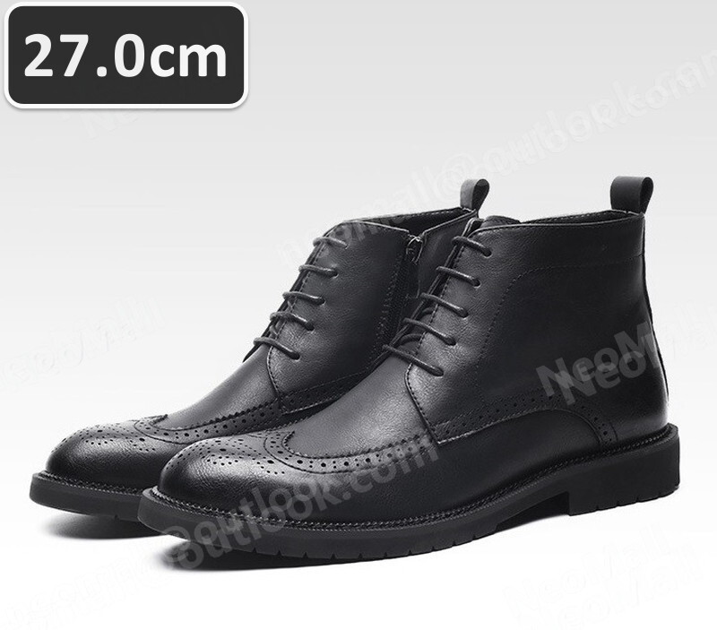 - サイドジッパー付 PUレザー メンズ シュートブーツ ブラック サイズ 27.0cm カジュアル 屈曲性 通勤 軽量 インポート品【n029】