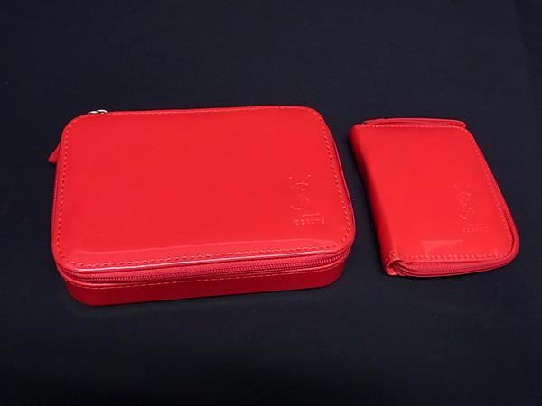 - ■美品■ YVESSAINTLAURENT イヴサンローラン パテントレザー ミラー付き メイクポーチ 化粧ポーチ マルチケース レッド系 DG9141