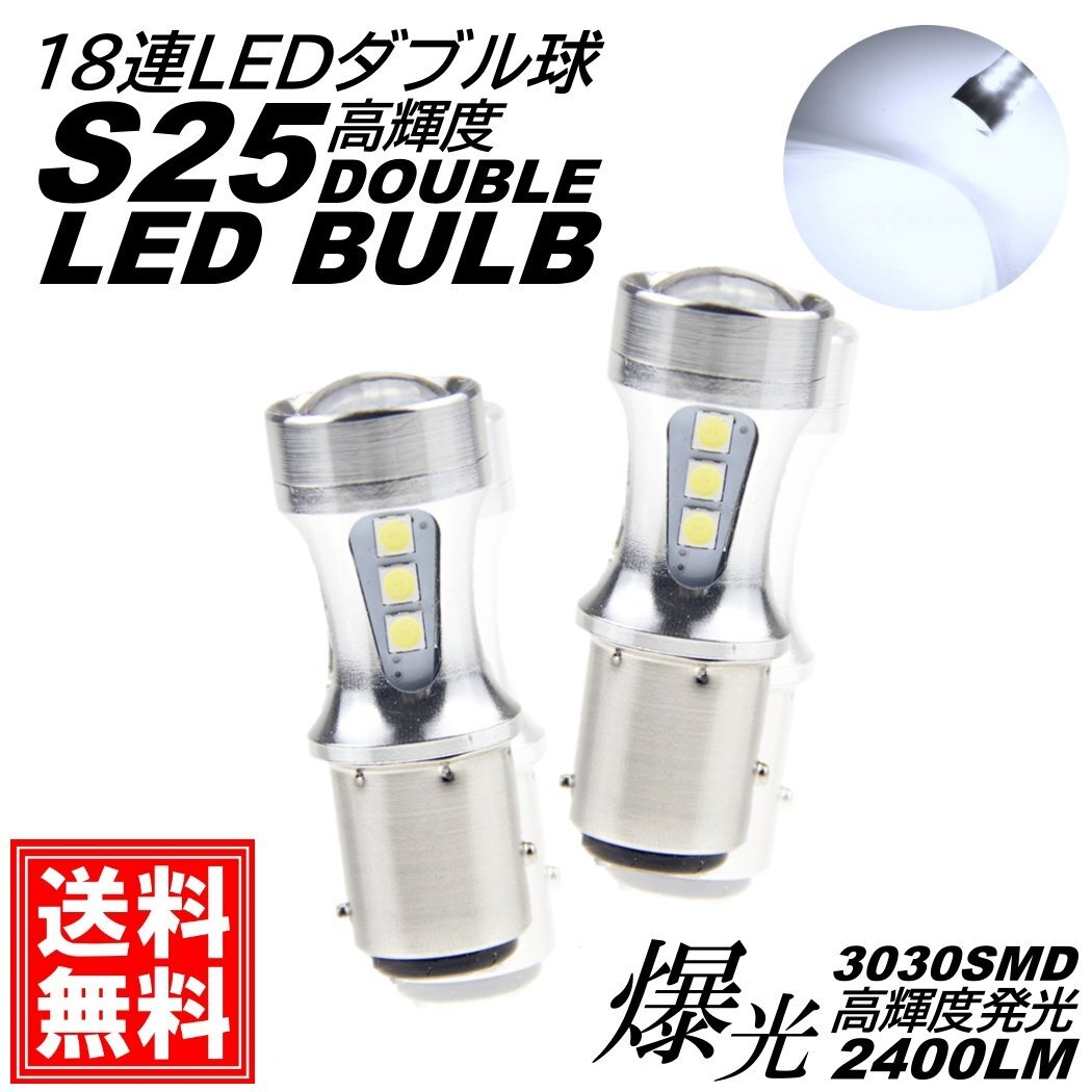 - S25 ダブル球 爆光 LED 18連 ブレーキランプ球 テールランプ球 ストップランプ DC12V LEDバルブ ホワイト