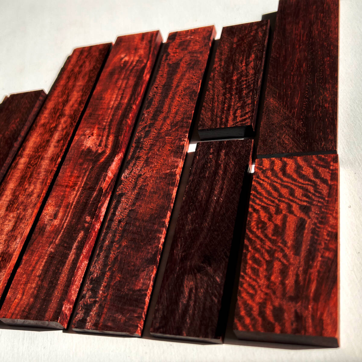 > ★ 紅木 極上杢 切落薄板材 8材あわせて 希少材最高峰 絶滅保護材 トチ 杢『神の木 金星』Sandalwood レッドサンダー 札材 寄木 木工