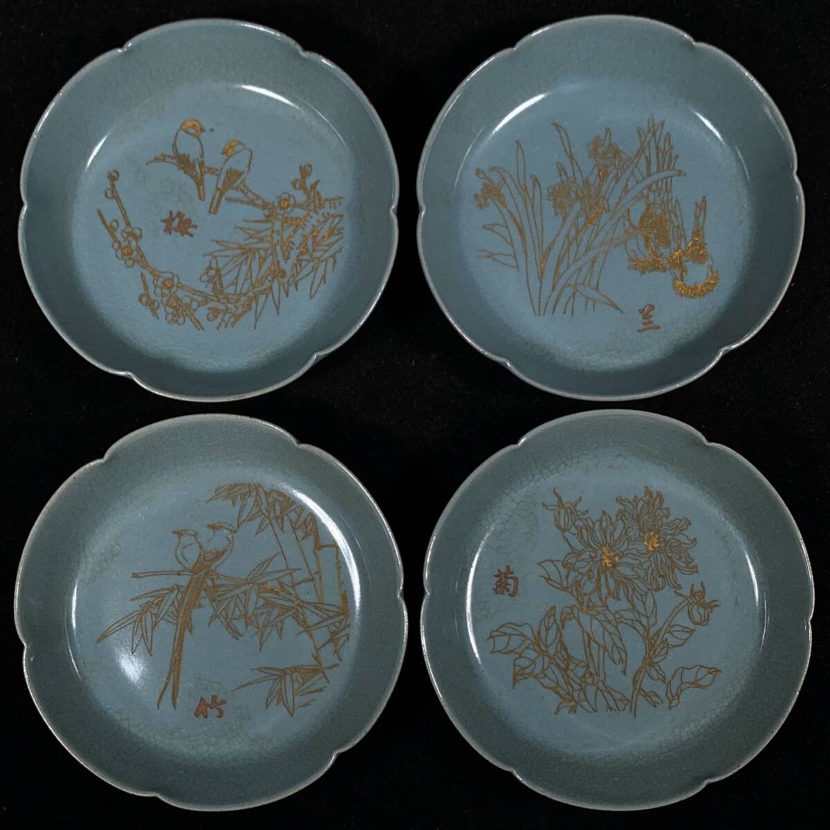 - 旧蔵 宋代 汝窯 銘文 梅蘭竹菊 葵口 卷足洗 古陶瓷品 陶藝 古擺件 古置物 中国古玩 骨董品 時代物 稀少唐物