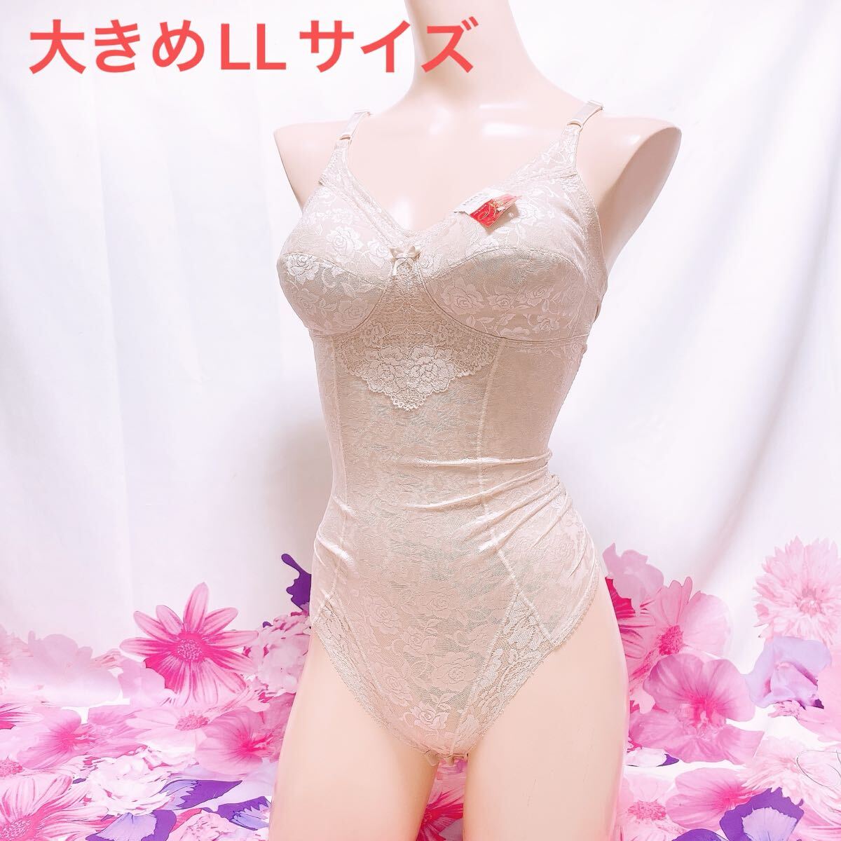 - 608 大きめLLサイズ ハイレグ ボディスーツ 整理品 補正 クロッチ開閉ボタン付 ポリエステル生地 新品タグ付き