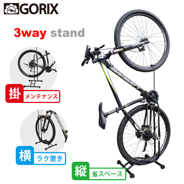 3タイプの置き方でマルチに使える ロードバイク・マウンテンバイク・クロスバイク・ミニベロに最適なホイール差込式スタンドです。 タテ置き、ヨコ置きどちらにも対応。 タテ置きの場合は上部フックにフロントホイールを引っ掛けることで立てることができます。 ヨコ置きの場合はフロントホイールを差し込むだけで安定して自転車を立てることができます。 4点荷重&鉄製フレームで安定感抜群です。 タテ置きにすれば省スペースで自転車を収納することができます。 メインフレームには、間隔調整可能なU字フックが2箇所付属。 U時フックにチェーンステーを引っ掛けることで、後輪が浮き上がり、メンテナンススタンドとしても使用することができます。 各フックには保護ラバーがあるので大切な自転車を傷つけません。 使用しないときは工具不要で分解ができるので、収納にも困りません。 外寸:120 x 43 x 38cm 対応寸法:ホイール直径29インチまで タイヤ幅最大6cmまで対応 重量:2.0kg |