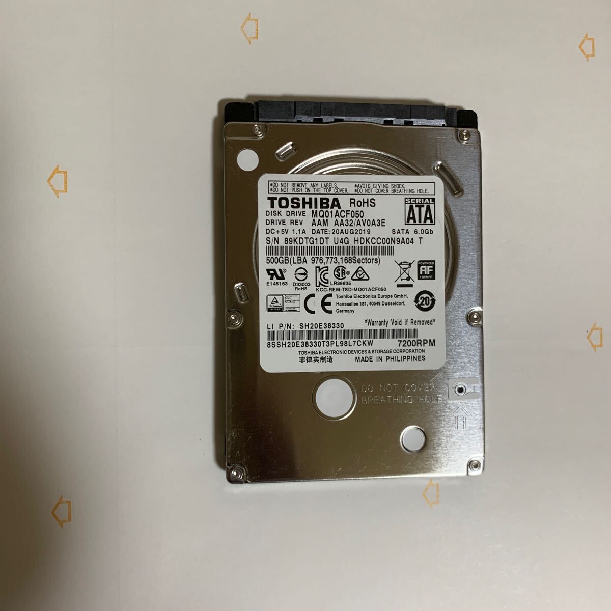 - HDD:500GB TOSHIBA MQ01ACF050 SATA 2.5インチ 厚さ7.0mm ハードディスク
