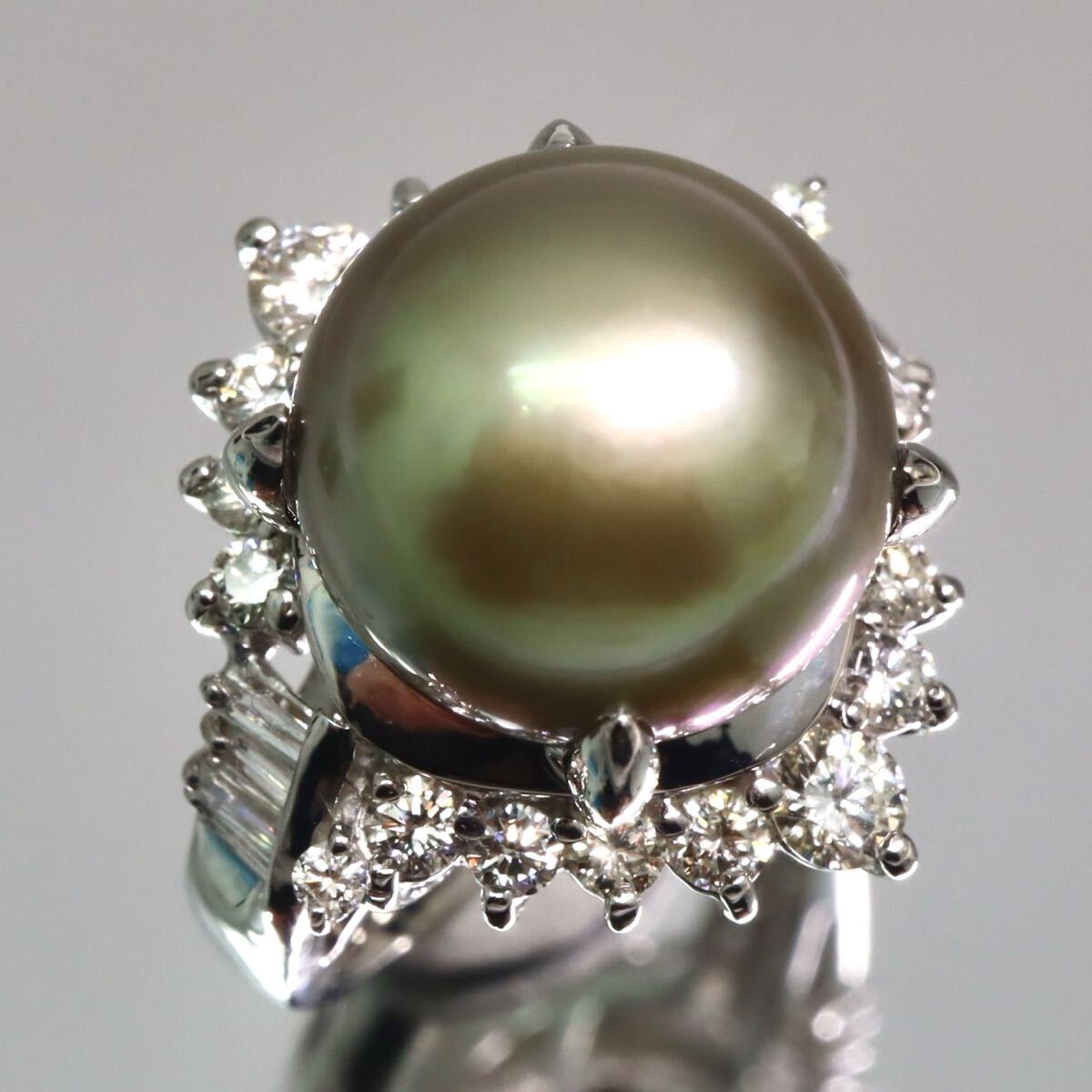 > テリ抜群!!大珠!!Pt900!!◆南洋黒蝶真珠/天然ダイヤモンドリング◆D 約15.0g 約12号 #12 パール pearl diamond 指輪 ring FA3/ X904