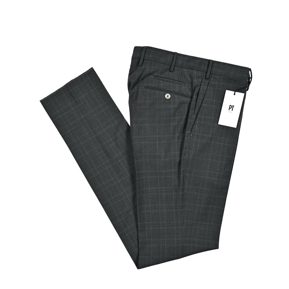 > 新入荷 新品 ピーティートリノ PT TORINO Travel トラベル スリムフィット スラックス パンツ ストレッチ ウール グレンチェック 415012-52