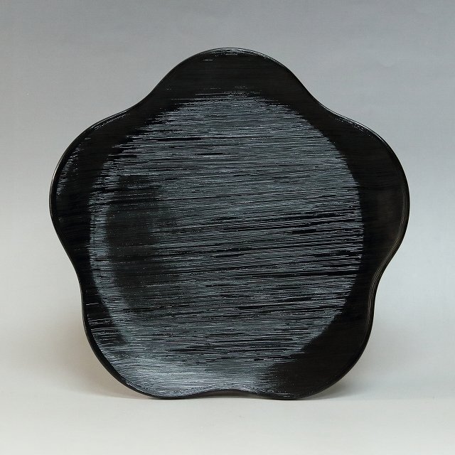 > ◆◇木製 刷毛目真塗 梅花形 干菓子盆 (1970年頃) 黒塗 菓子器, 盛器/皿/酒膳にも◇◆漆器 漆芸 木工 モダン茶道具 懐石 和食器 dby11172-e