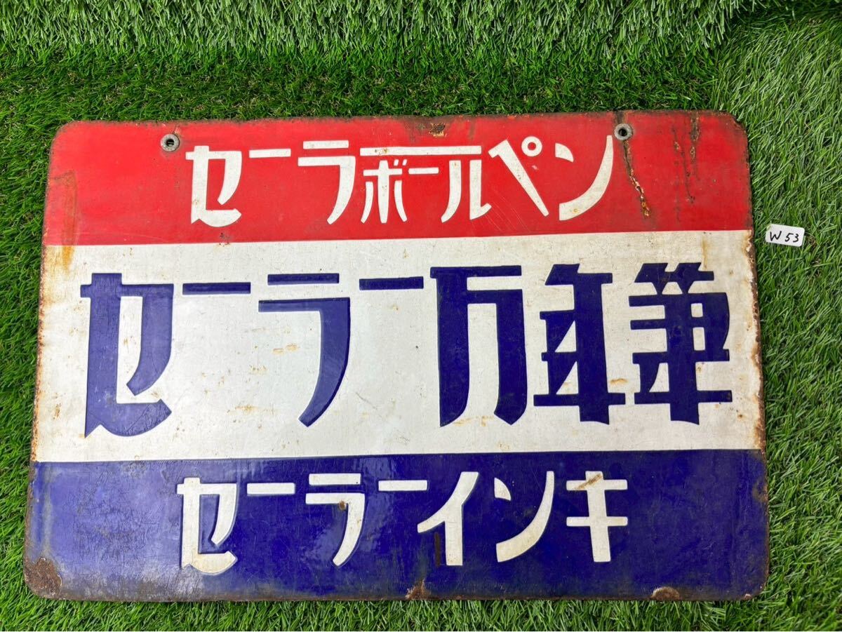 - 【W53】 ホーロー看板 サボ プレート 昭和レトロ 金属製 愛称板 ビンテージ 当時物 看板 セーラー万年筆 インキ ボールペン
