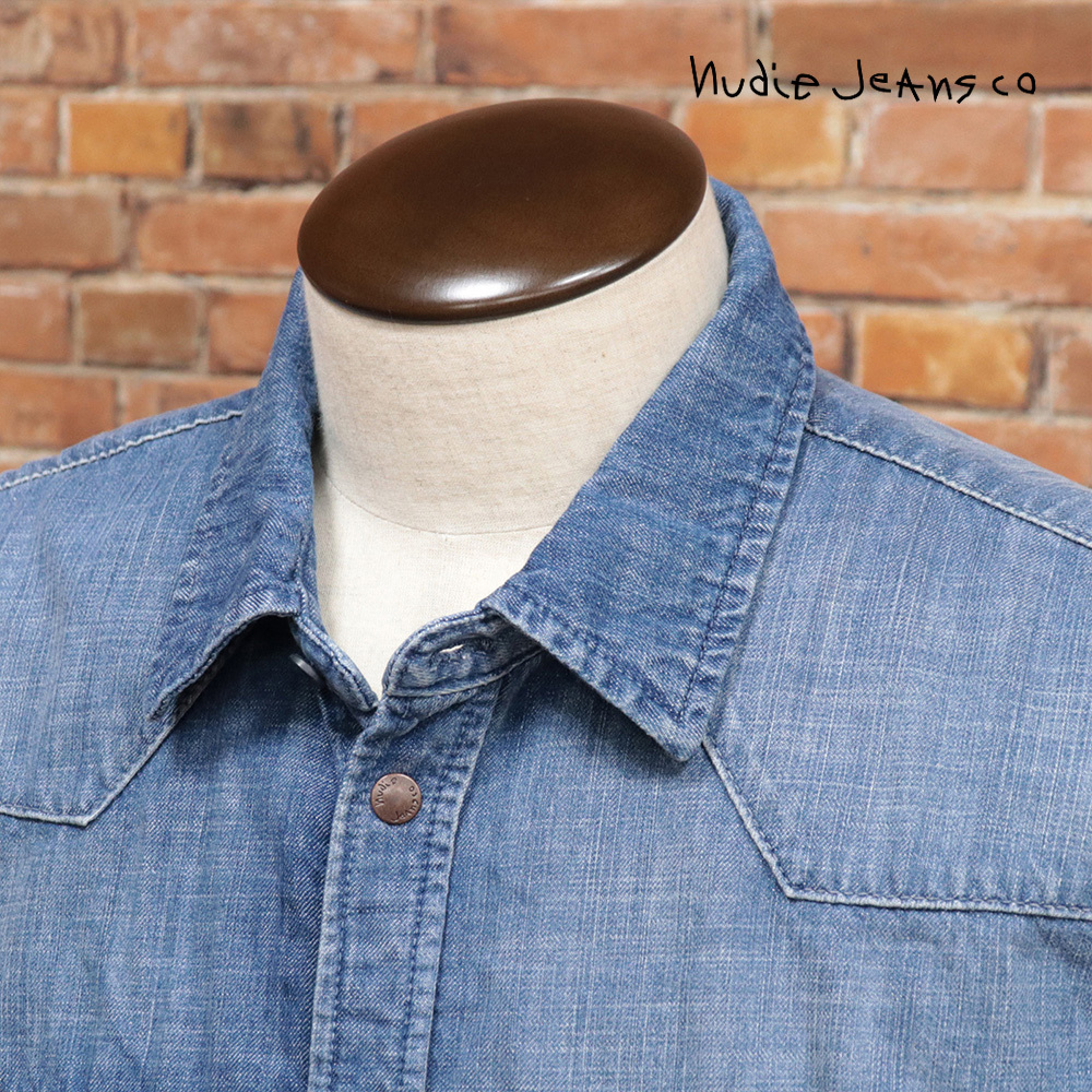 > 1円/Nudie Jeans/Mサイズ/長袖ウエスタンシャツ GEORGE BLUE LEGEND ウォッシュ加工 ヌーディージーンズ 新品/青/ブルー/me203/