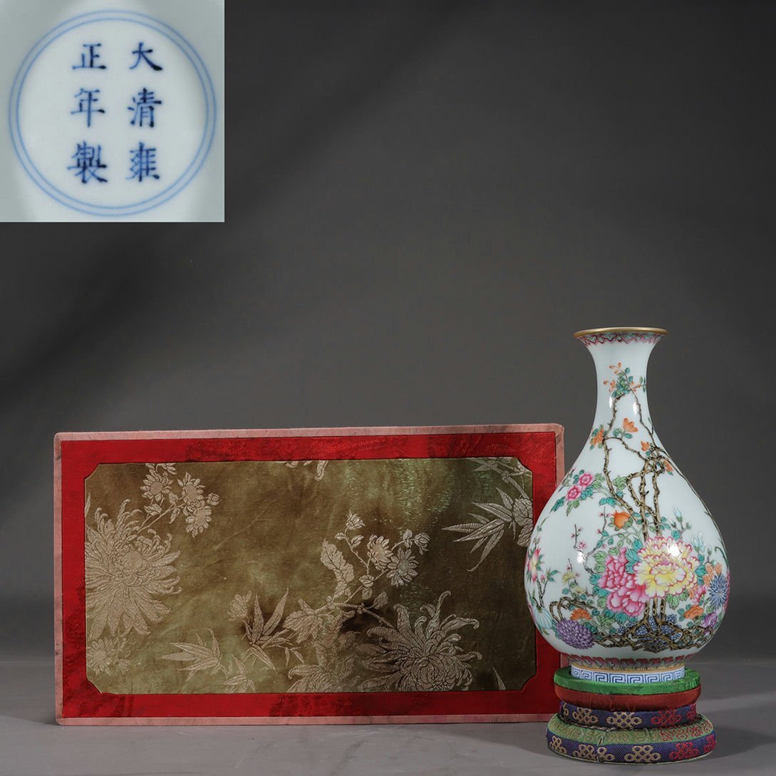 - ▼渡鶴羽▼A0765清雍正 粉彩花卉玉壺春瓶・古陶磁器 ・珍品旧蔵・古賞物・時代物