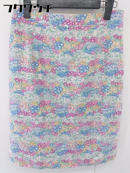 > ◇ KUMIKYOKU 組曲 花柄 レースアップ 膝丈 タイト スカート サイズ 2 ホワイト ピンク マルチ レディース