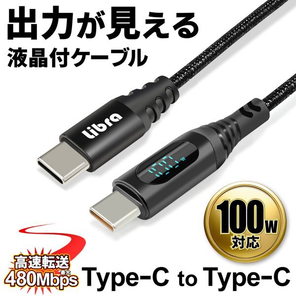 - 液晶付き iPhone16 充電 ケーブル Type-C to Type-C 高速転送 出力が見える 100W対応 データ 通信 転送 送料無料 50K◇ 液晶ケーブルC-C