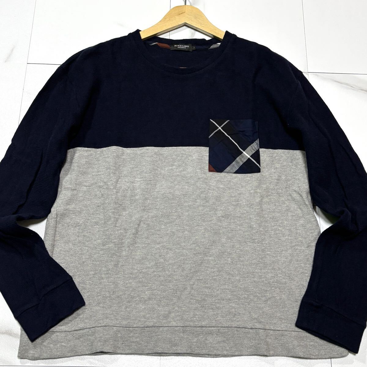 > 極美品/ Lサイズ BLACK LABEL CRESTBRIDGE ブラックレーベルクレストブリッジ Tシャツ 長袖 CBチェック ネイビー バイカラー
