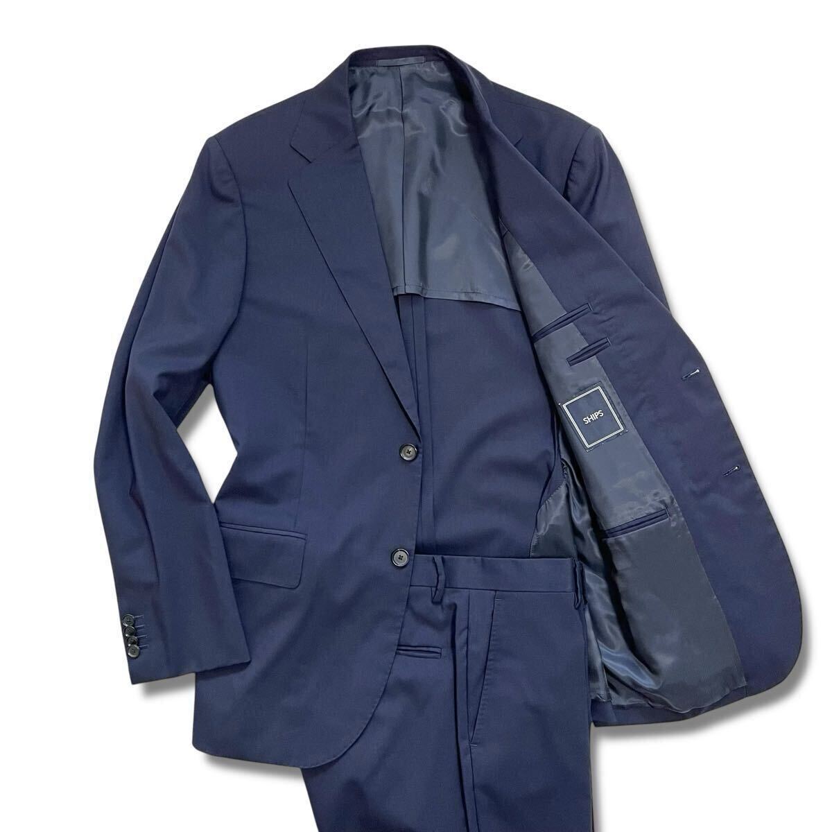 > 美品 SHIPS × CERRUTI 別注 素材 iCruise セットアップ スーツ 48 ネイビー 段返り シップス チェルッティ