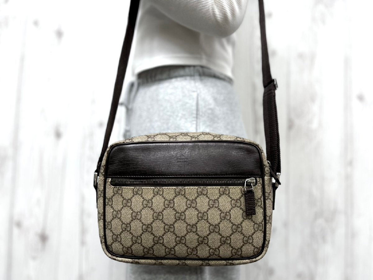 > 極美品 GUCCI グッチ GGスプリーム ショルダーバッグ バッグ レザー 茶 メンズ 92507