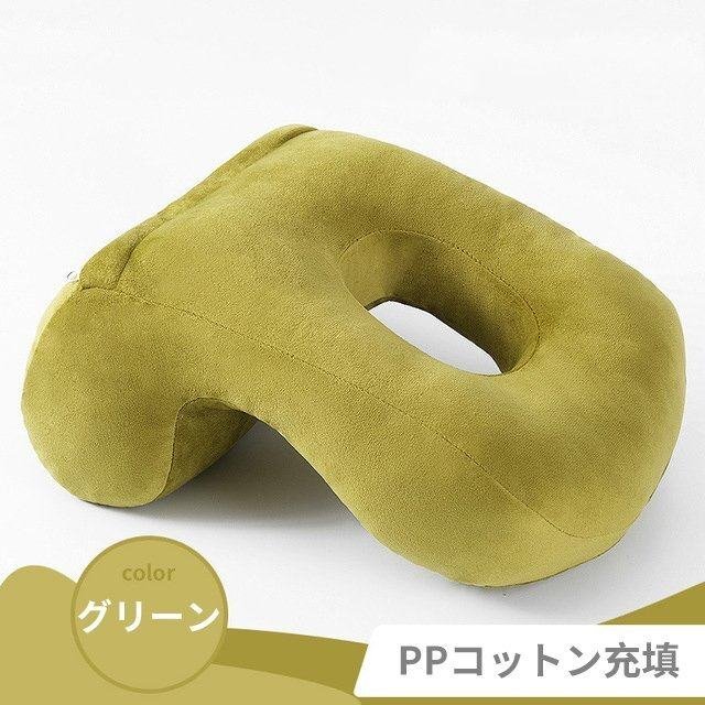 > お昼寝クッション ピロー オフィス デスク 休憩 仮眠用 昼寝クッション 旅行 仮眠用枕 中空穴付き 学校 スクール 通気穴付き グリーン