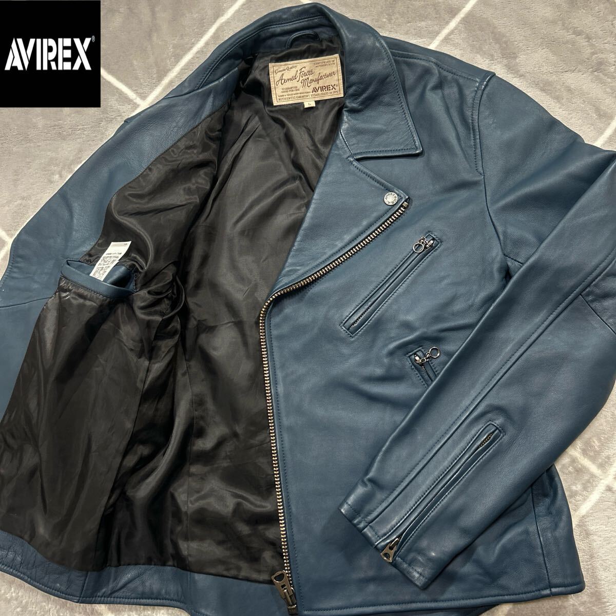 - 【極美品L】超希少色 最高傑作 AVIREX アヴィレックス ダブルスレザージャケット 紺色 羊革 ラムレザー【滑らかな手触り】紳士の極上品