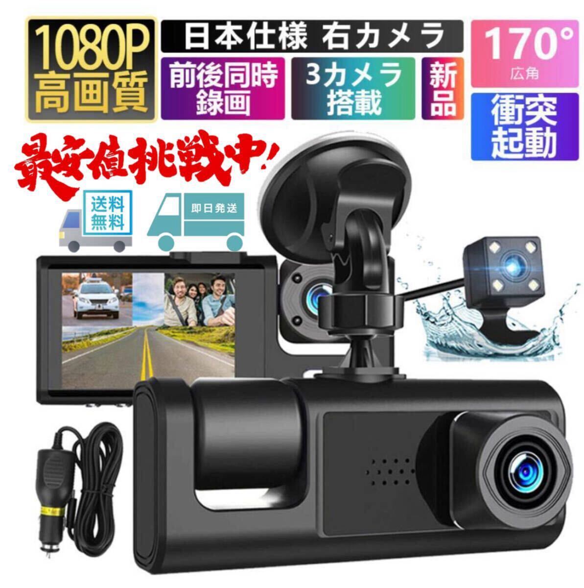 > ドライブレコーダー 2インチ 車内 前後 3眼カメラ バックカメラ 日本語説明書付き 広角 レンズ Gセンサー 1080P 高画質 フルHD 常時録画