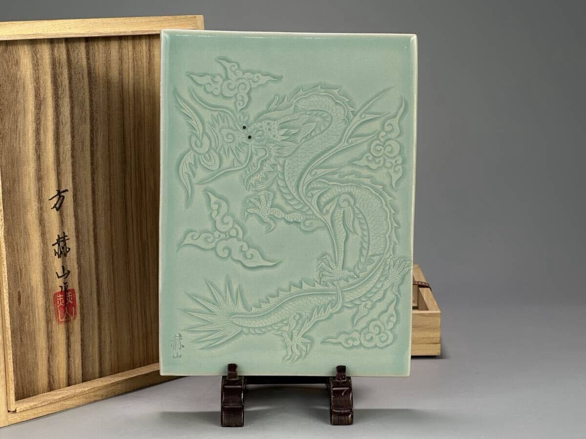 - UM10-8 韓国美術 方澈柱 方赫山 高麗青磁 龍文 硯屏 書道具 文房具