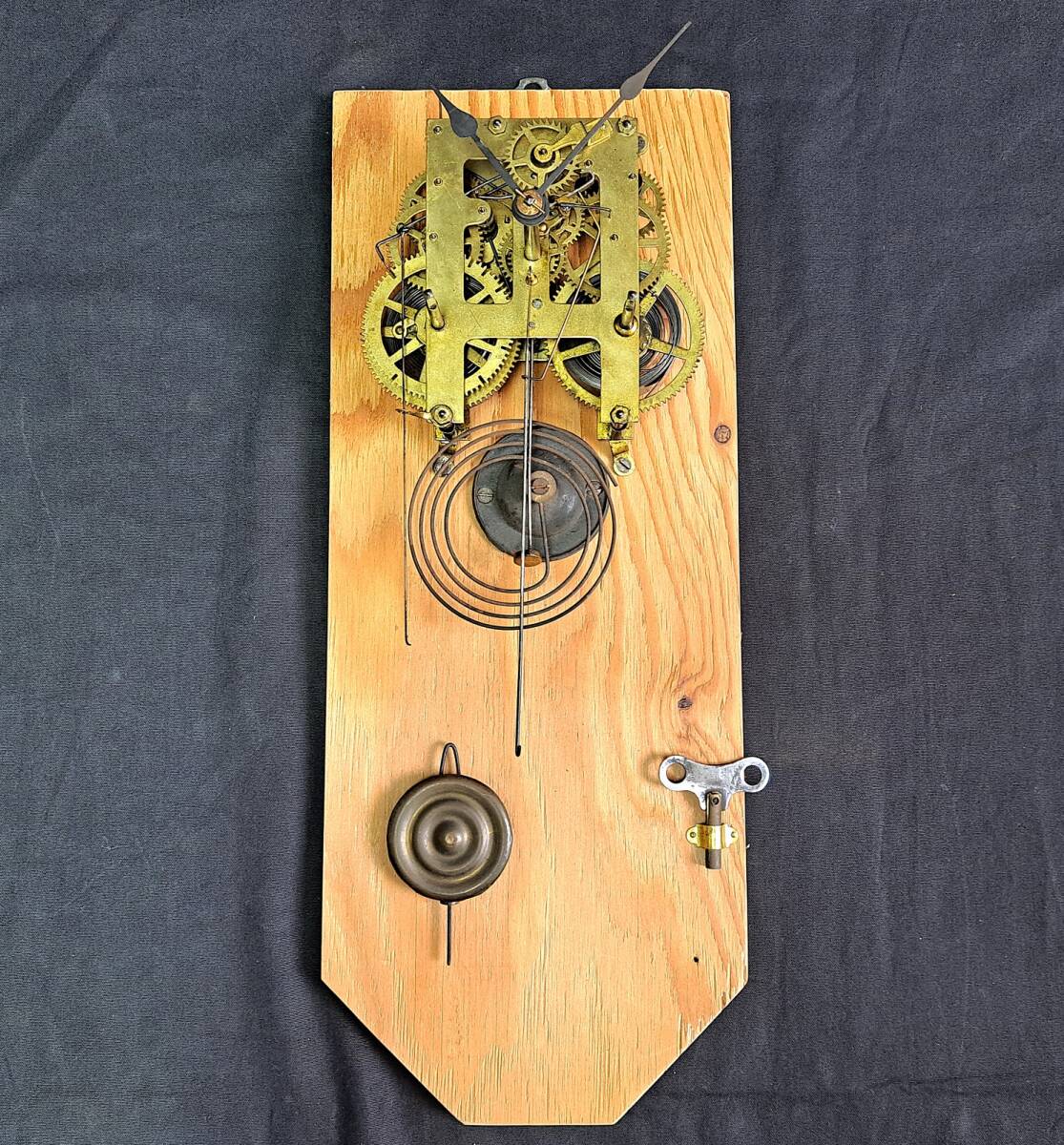 > 明治時代~大正時代頃の歯車やゼンマイが見える柱時計動作確認済② 真鍮機械 シャビー/アイアン/インダストリアル 昭和レトロ アンティーク