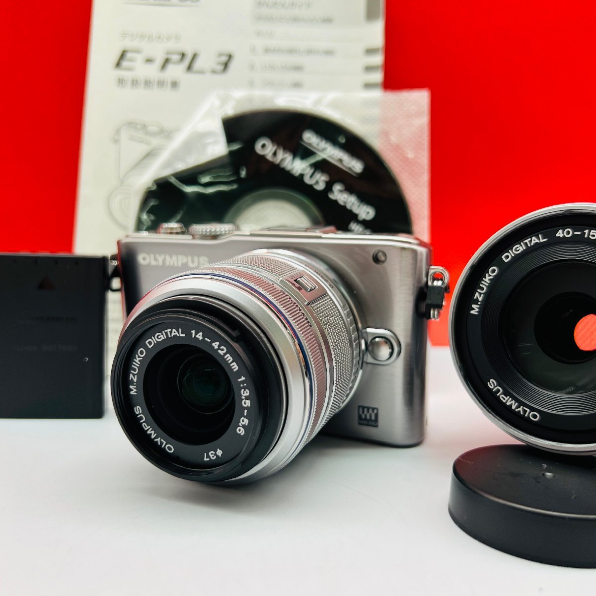 - K24 OLYMPUS PEN Lite E-PL3 M.ZUIKO DIGITAL 14-42mm F3.5-5.6/40-150mm F4-5.6 FL-LM1 デジタルミラーレスカメラ 動作品 1円 オリンパス