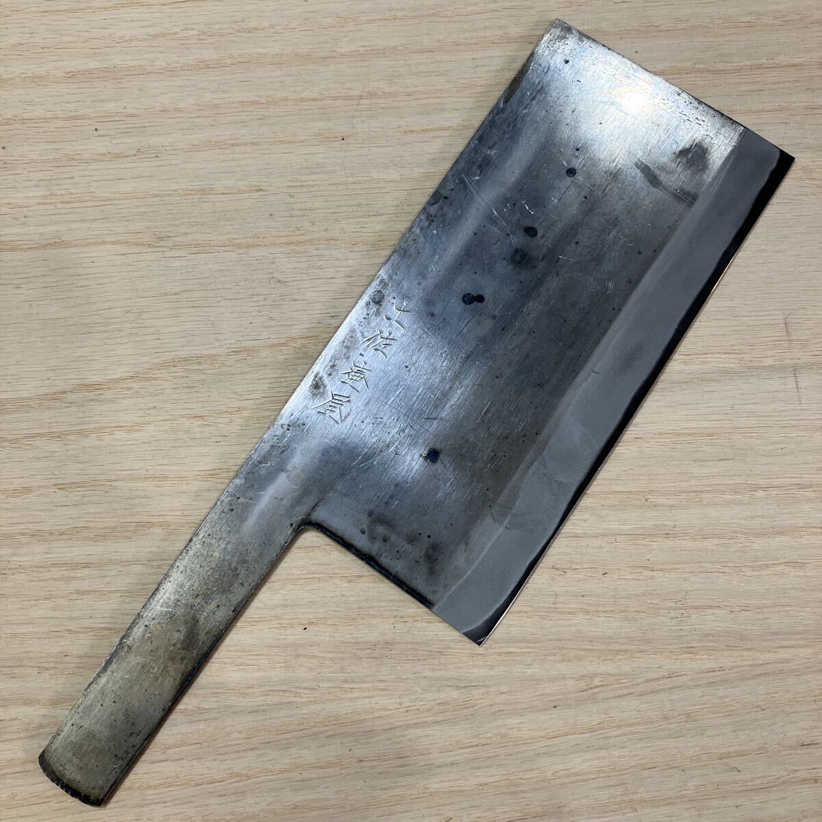 > 【未使用】 土佐打刃物 中華包丁 チョッパーナイフ 青紙一号 黒打ち鍛造 柄なし 両刃 土佐包丁 土佐刃物 中華