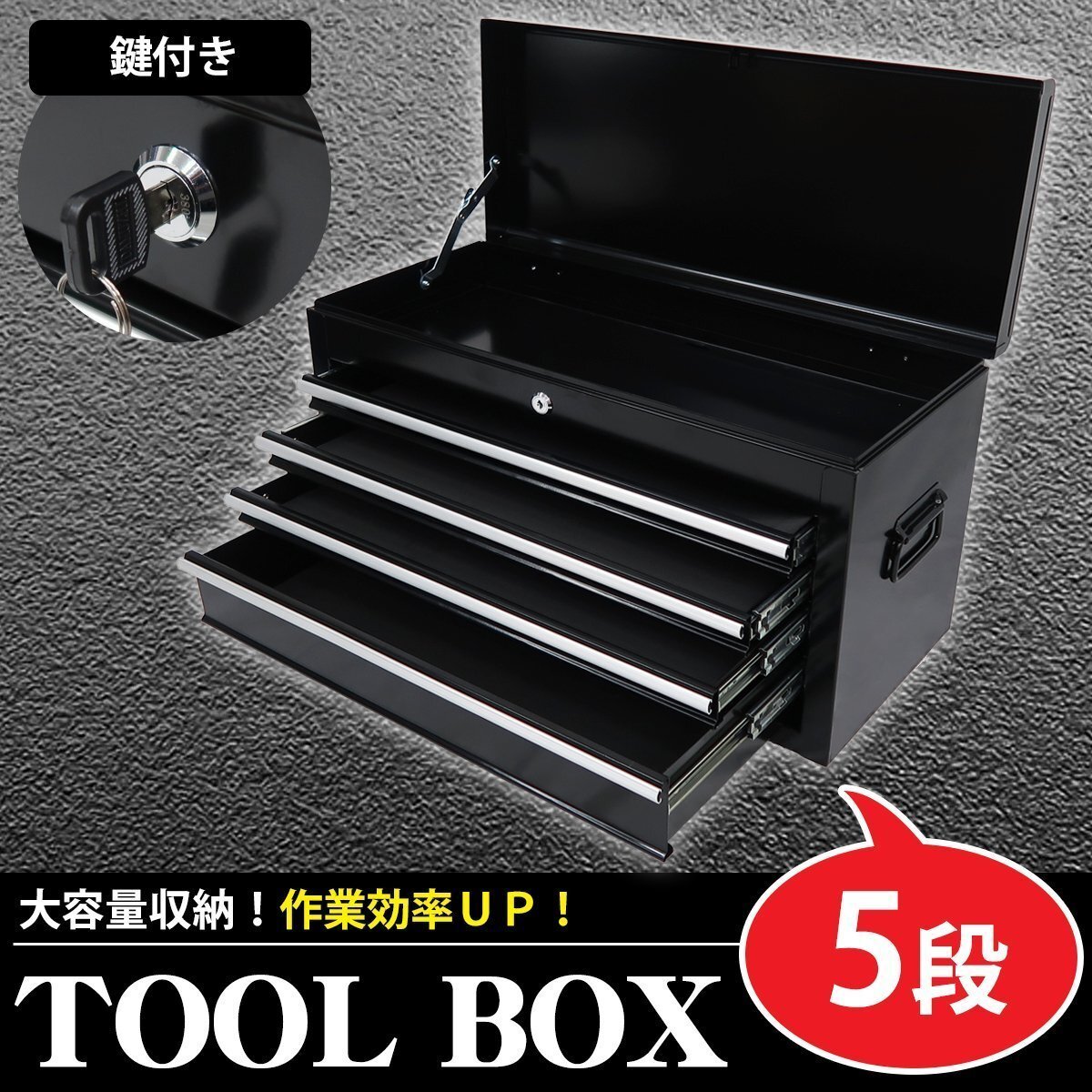 - 1円 ツールボックス おしゃれ 5段 工具箱 キャビネット 工具ケース チェストタイプ 収納 整備 整理 ブラック KW-09BK