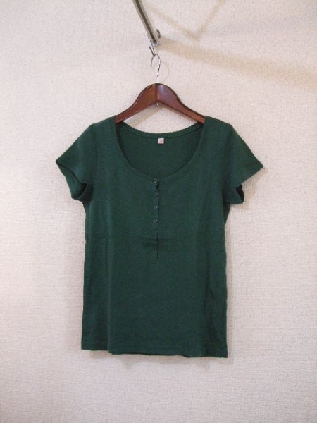 - ユニクロ緑ヘンリーネック半袖カットソー(USED)72315