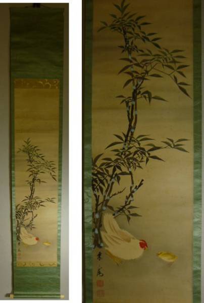 - 旧家から 掛軸 平井東庵 南天 箱 付