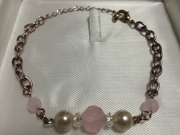 - ピンクビーズ フェイクパール デザインブレスレット【検/真珠】