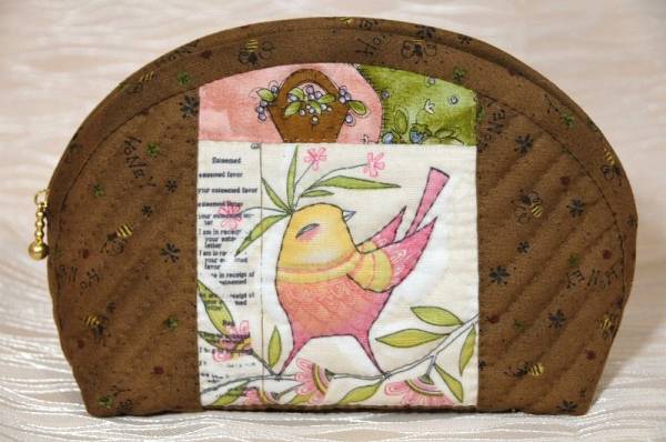 - ♪ハンドメイド♪KAZU♪パッチワーク ポーチ 茶鳥×リス 柄 ブラウン オリジナル handmade