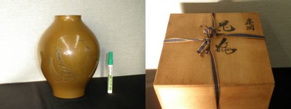 ★本物保証 旧家蔵出時代 銀線象嵌 銅製花瓶 勘溪(管理 Z16)