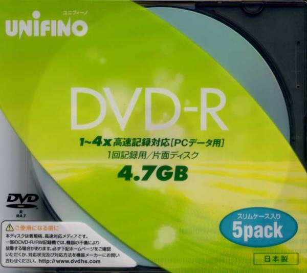 - UNIFINO DVD-R 5枚pack 非プリンタブル 原産国 日本 未開封