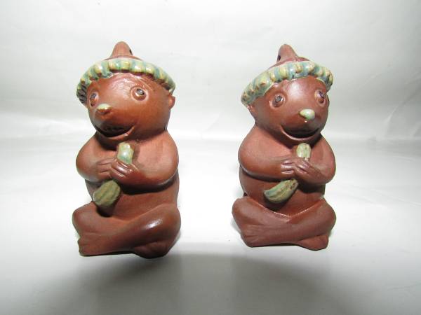 - (旧家・蔵出し)(レトロなきゅりを食べる河童土鈴2個)珍品